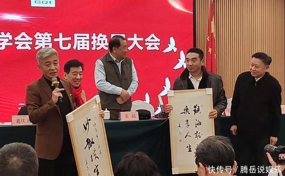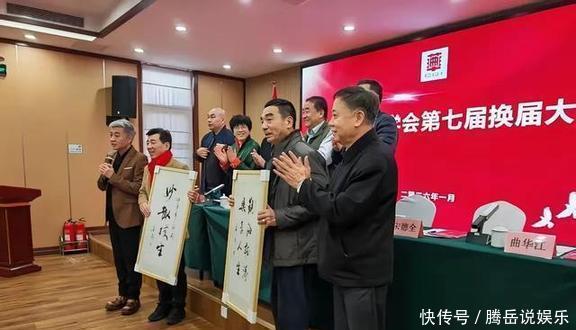 姜昆老师还特意写了一幅字送给大家伙儿,然后大家都站起来一起合了个影,现场那个气氛,别提多热闹了。台下的人也使劲鼓掌,都为这次选举顺顺利利的感到高兴。