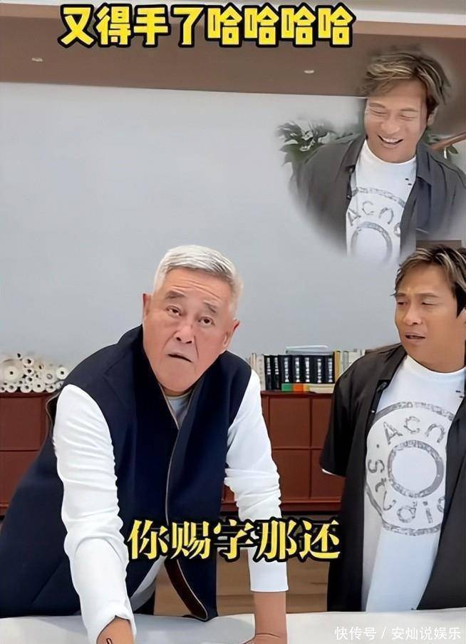 他有时候会在宋小宝的视频里现个身,穿着马甲练练字,还和徒弟们聊聊、逗逗趣。